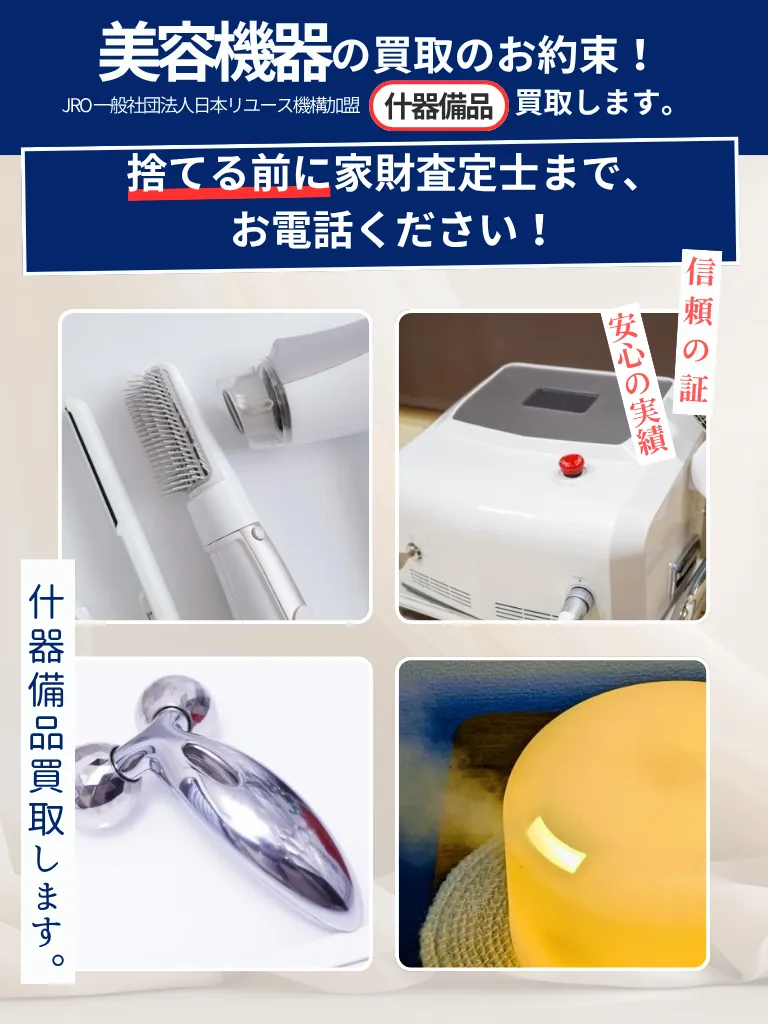 家庭用美顔器から業務用の大型エステ機器まで、あらゆるジャンルの美容・理容機器の買取で豊富な経験と実績があります。