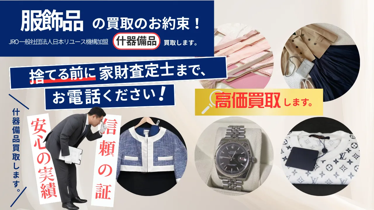 洋服や服飾品の買取だけでなく、その他の不用品回収や遺品整理、お部屋の片付けまで、ワンストップで対応可能です。