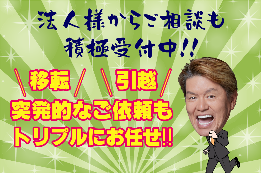 名取市の不用品買取・廃品回収なら、一般廃棄物収集運搬業許可業者のトリプルにお任せください。家具・家電1点から、遺品整理、ゴミ屋敷の片付け、空き家整理まで幅広く対応。まずはお気軽にお電話でご相談ください!