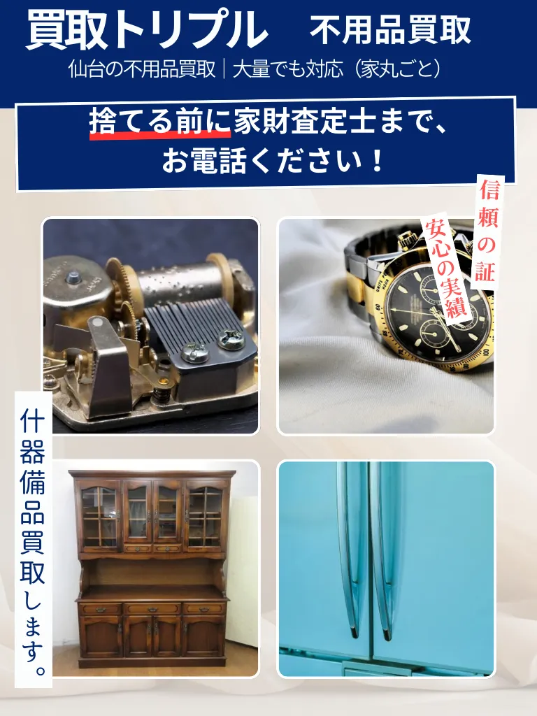 【不用品回収トリプル】は、仙台市・宮城県全域で