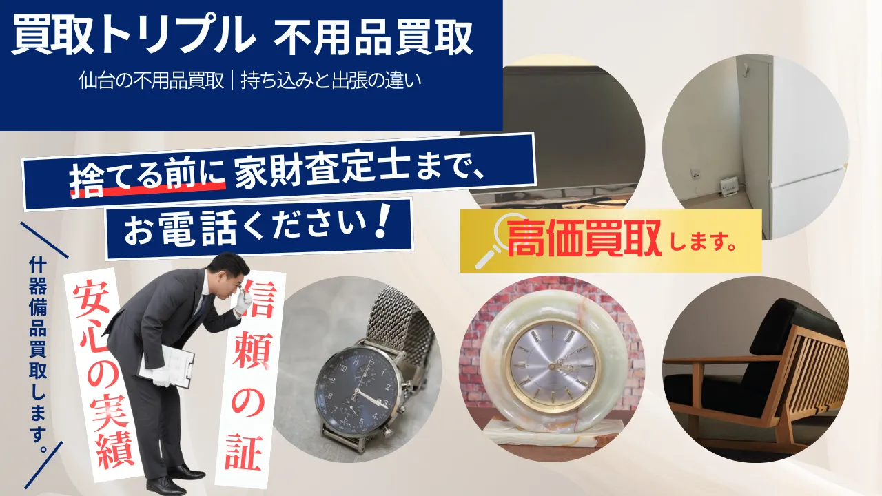いいえ、出張査定は【完全無料】です。仙台市近郊であれば、お見積もりのみでの訪問も可能です。「金額を聞いてから判断したい」という方も安心してお申し込みください。